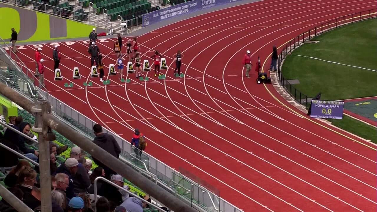 Girls 100m 3A Prelim Heat 1 - Oregon OSAA Outdoor State Championships 2022